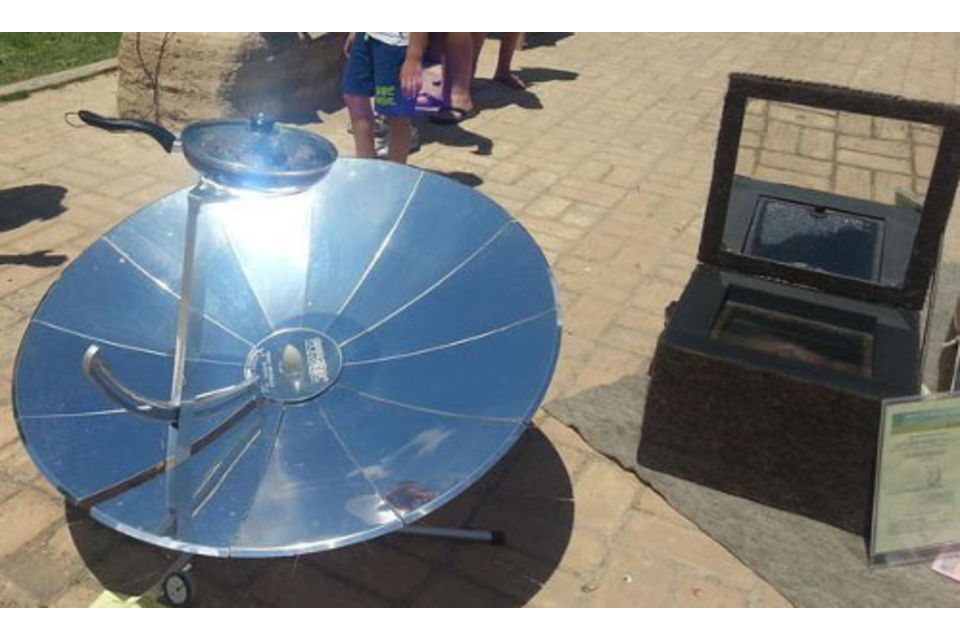 Il cibo è cotto senza fumo e combustibile fossile grazie ad un concentratore solare a parabola che.